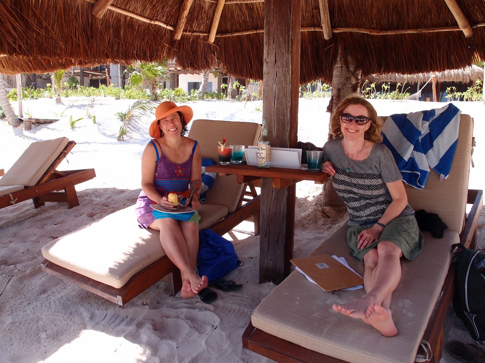 Just got back from a soul-filling writing retreat in Tulum with one of my closest friends, Laura Pritchett... and it was abracadabrant! In addition to sharing my name, Laura also lives in Fort Collin, also is in Old Town Writers' Group, and also gets the winter doldrums in February (and this winter's been tough-- snow on the ground since November, plenty of days in the single digits and teens) .... and we also both had airline vouchers just waiting to be used.... So we spontaneously decided to soak in some sea and sunshine and tropical greenery and warmth together last week to lift our spirits.