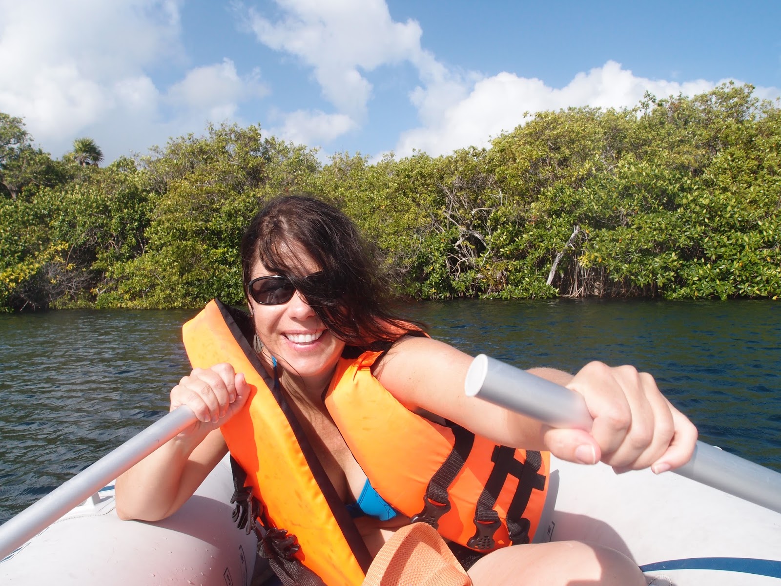 One morning, we visited a nearby cenote (a freshwater lake connected to an underground cave system, sacred to the Maya). This one was called Cenote Encantado, and was just down the road by a campground. It was surrounded by mangroves, and supposedly there were some baby crocodiles floating around nearby. We rented out a little boat and did some snorkeling and felt minorly freaked out by the baby crocodiles (which stayed hidden).