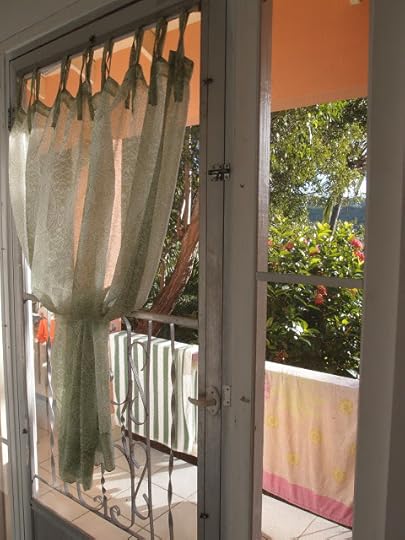 It was so pleasant to sit on the porch and feel the breeze and hear the birds and insects (and wild chickens). The temp was perfect-- 80 degrees and not too humid. I love these clanky old metal screen doors...