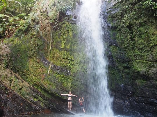 Lil Dude and I giving ourselves a limpia (spirit-cleaning) in the waterfall...