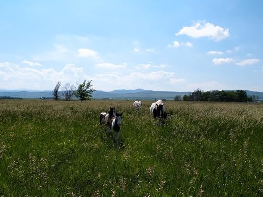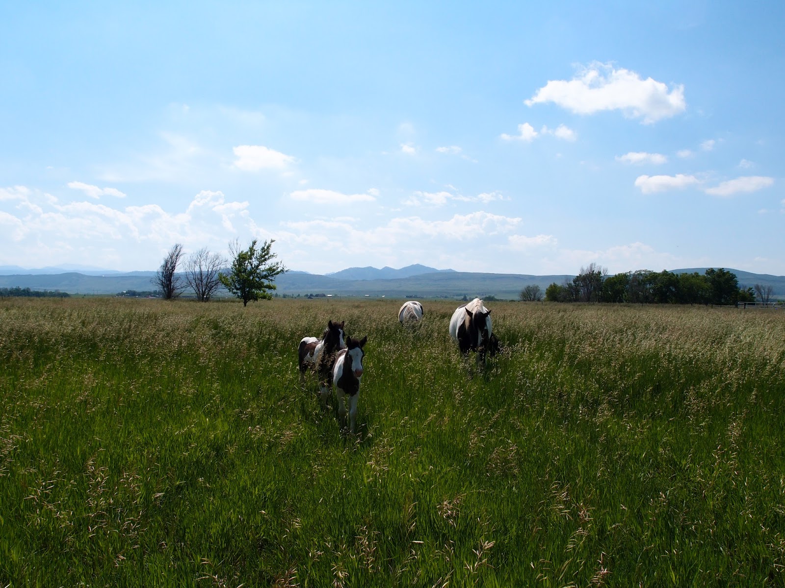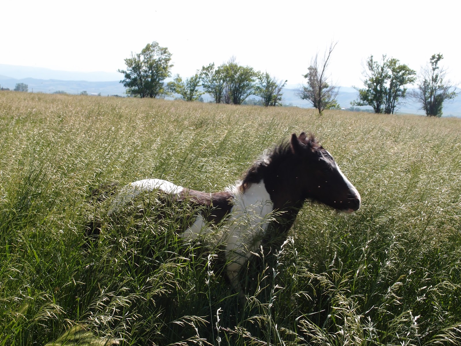 They lead extremely happy lives on the farm, staying for many months with their mothers, wandering the huge fields with a backdrop of the Rocky Mountains, getting lots of love from Jan and Charlie and their Gypsy dog, Finn. In Ireland, caravans often included this breed of dog who, like the horses, also were a useful, gentle, and well-loved part of the family. They are expert hunters, and will go off on their own to fetch rabbits or other small animals to have for dinner. (Finn has proudly brought home rabbits and squirrels.)