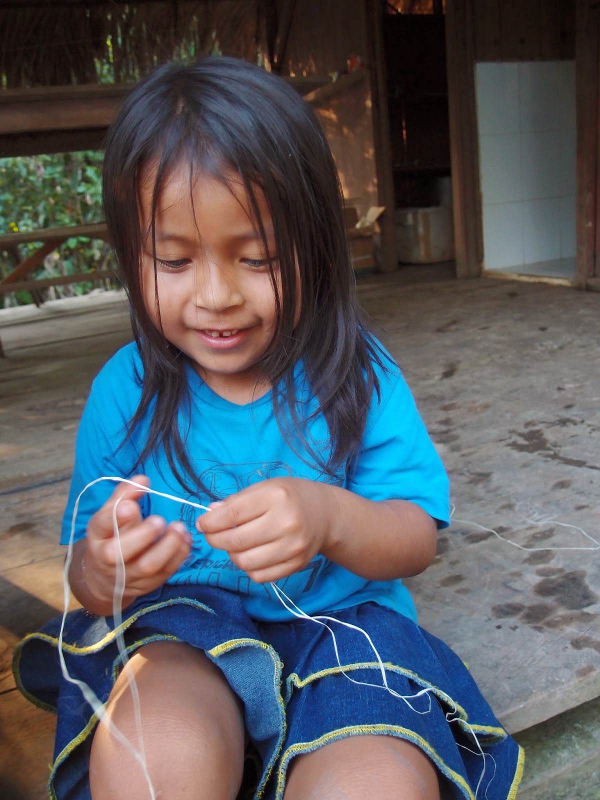 In the first post I did, I showed pics of him climbing using a woven ring of vines to help him climb... but he only needs that when he's climbing while carrying his blowgun and spear. With his hands totally free, he doesn't need any extra help. He said that by the time kids are 7 or 8, they've mastered the skill of climbing trees that are over a hundred feet high. (My Lil Dude would definitely prefer mastery of tall-tree-climbing over mastery of double-digit-addition any day.)