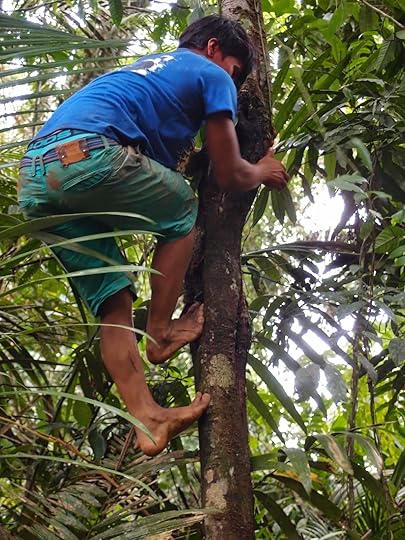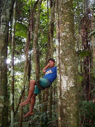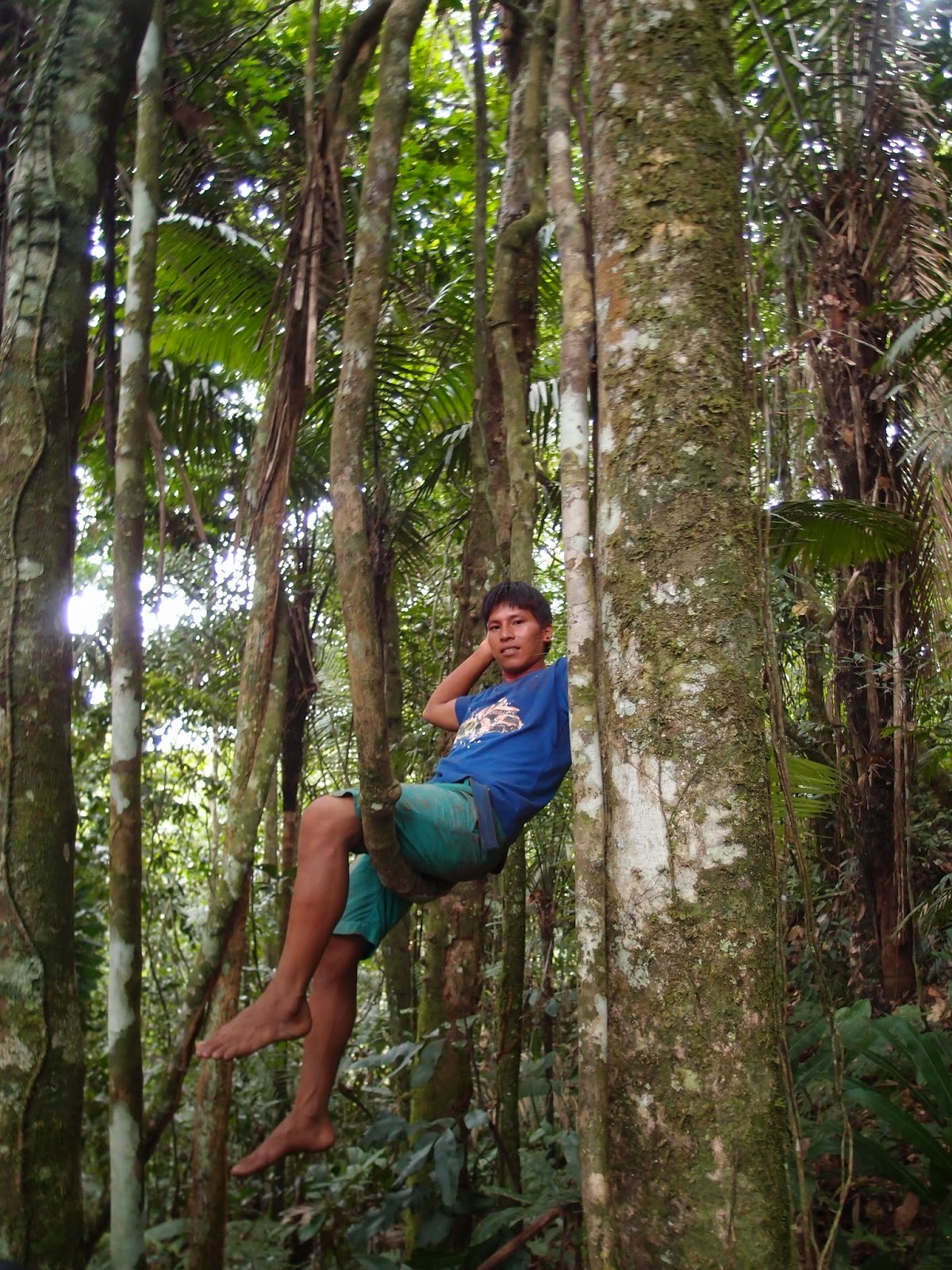 Pegonka didn't start school until he was a young teen, so his childhood was blissfully free... (Waorani kids nowadays in his community do start school at a younger age-- and then after school they swing and climb and shoot in the jungle.)