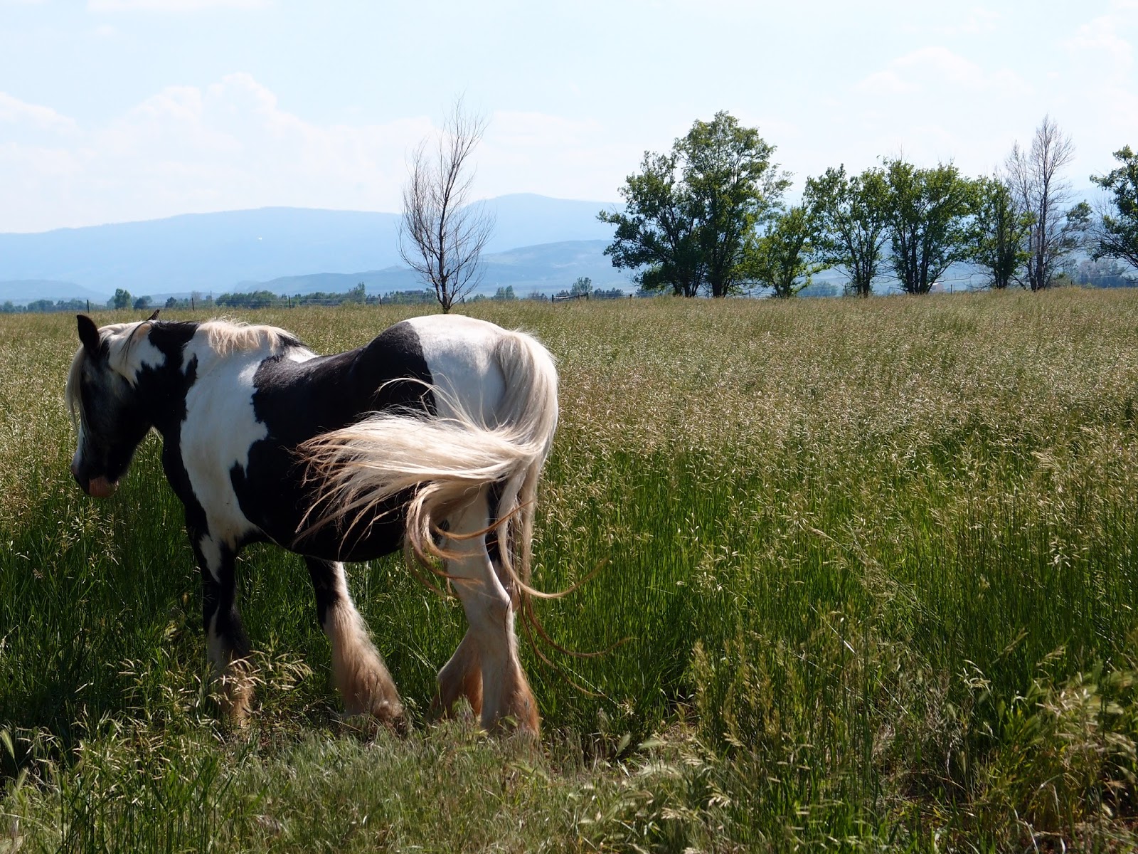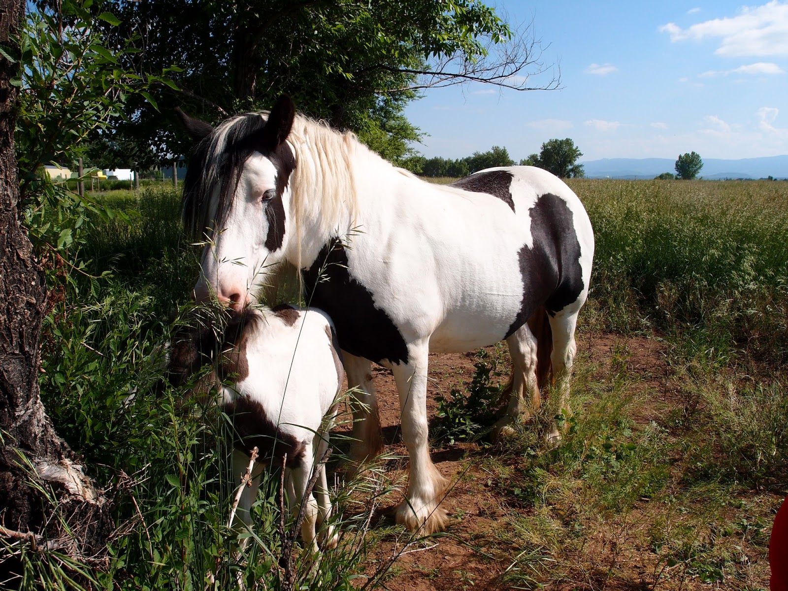 It's incredible to me that within a few hours of birth, the foals are already walking around... and within a few weeks they're already munching on grasses to supplement their mother's milk. Supposedly Gypsy mare's milk is incredibly nutrient-rich and makes these foals grow heartier and faster than other horse breeds.