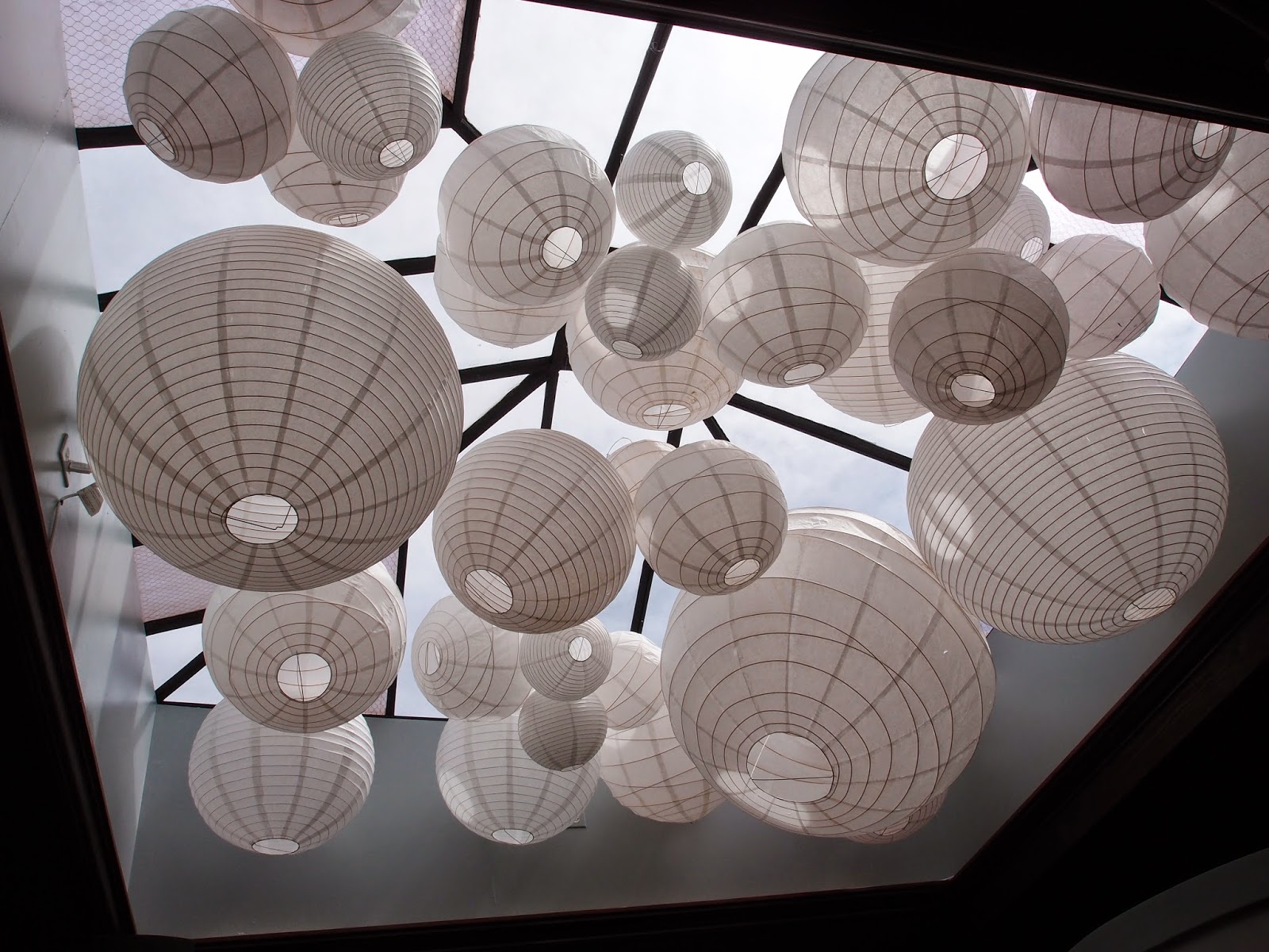 I really love what they did with this antique skylight, to filter the bright sunlight....