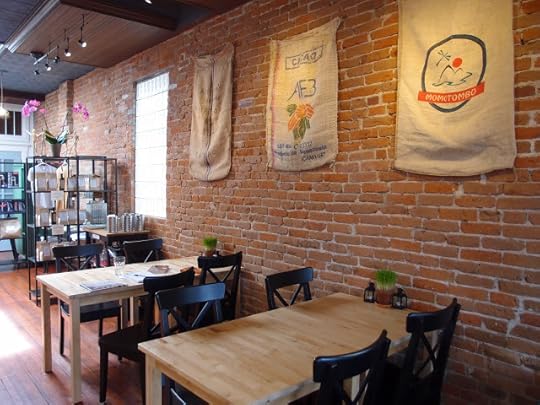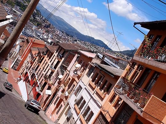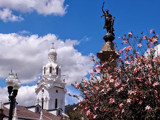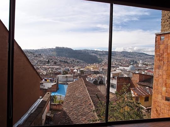 I had to do page proofs for The Lightning Queen over my trip, and had only a small window of time to do them-- basically the plane ride there and my "free day" in Quito, before heading to the jungle. So I found this comfy spot on the third floor lobby and worked and enjoyed the view. I took breaks here and there to get some tea from the second floor or walk down to the plaza and get food. It was delightful!