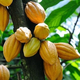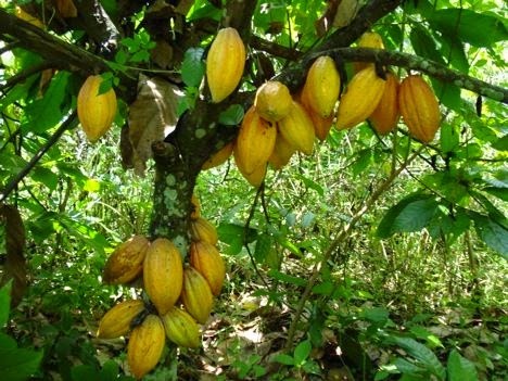 The cacao pods grow on the tree trunks!The organically-grown cacao pods are harvested at one of the small-scale, environmentally and socially respectful co-ops that they work with in Latin America or Africa. Alix and Toby try to cut out as many middlemen as possible, so that the maximum amount of money possible can go directly to the community of growers. The plantations aren't necessarily formal rectangles of land-- they can be in the middle of the jungle, which is best because the cacao plants love a good tree canopy.