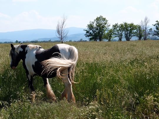 These horses are gorgeous and sweet, with distinct black and white patterning and elegant tufts of hair around their ankles. I love their luxurious manes and tails so much!