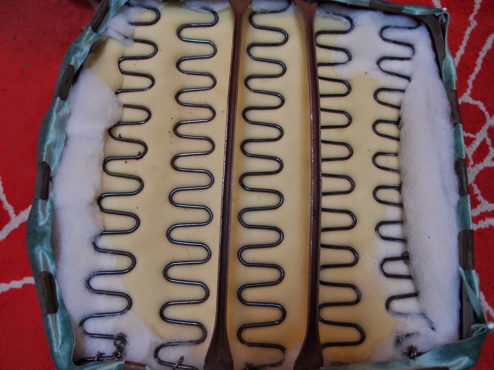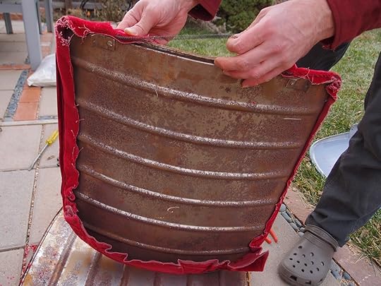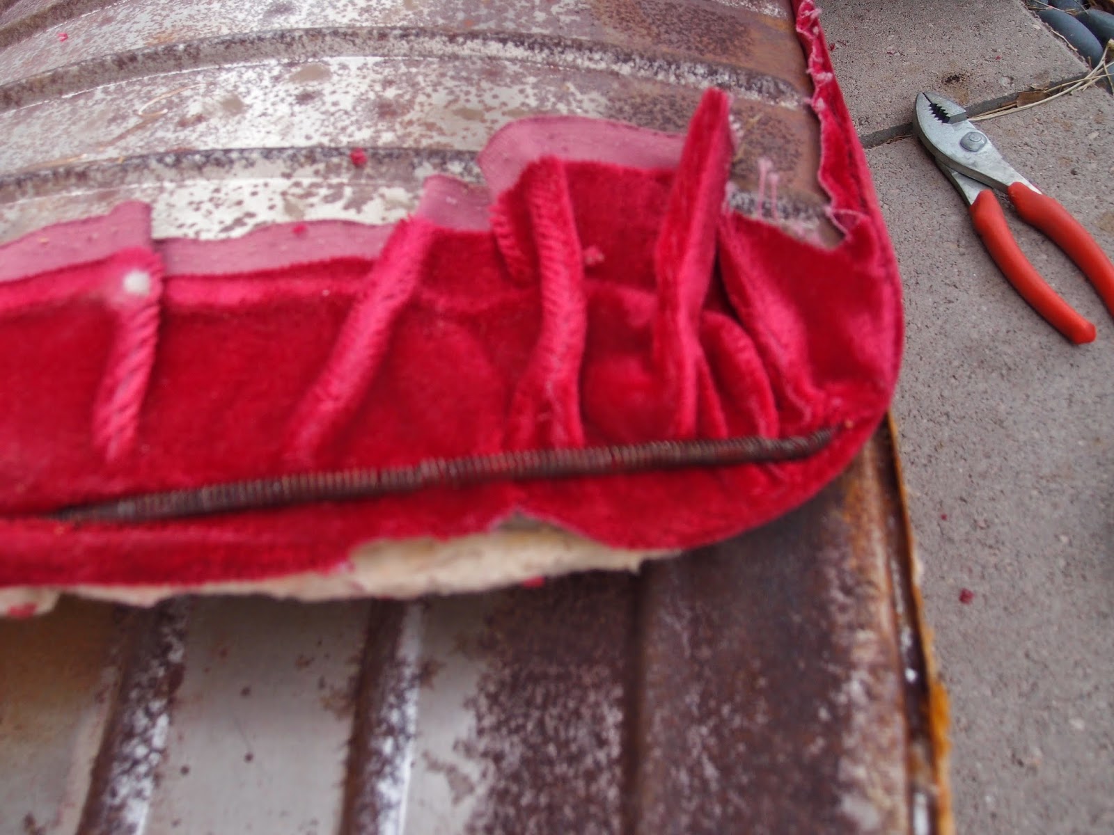 It was so fascinating to see the way these seats were originally assembled... there's this narrow, slinky-like spring that's holding the seat back fabric into place.