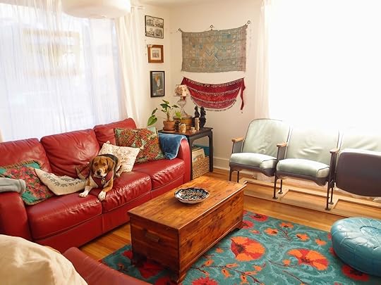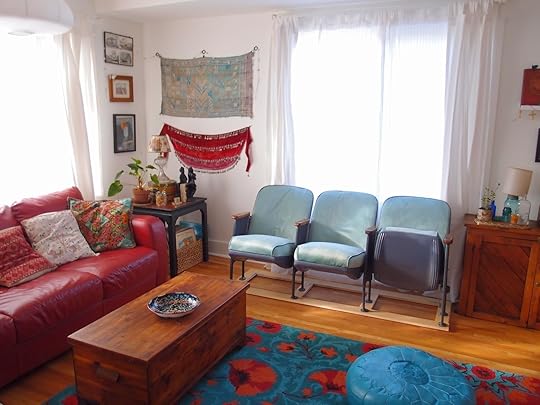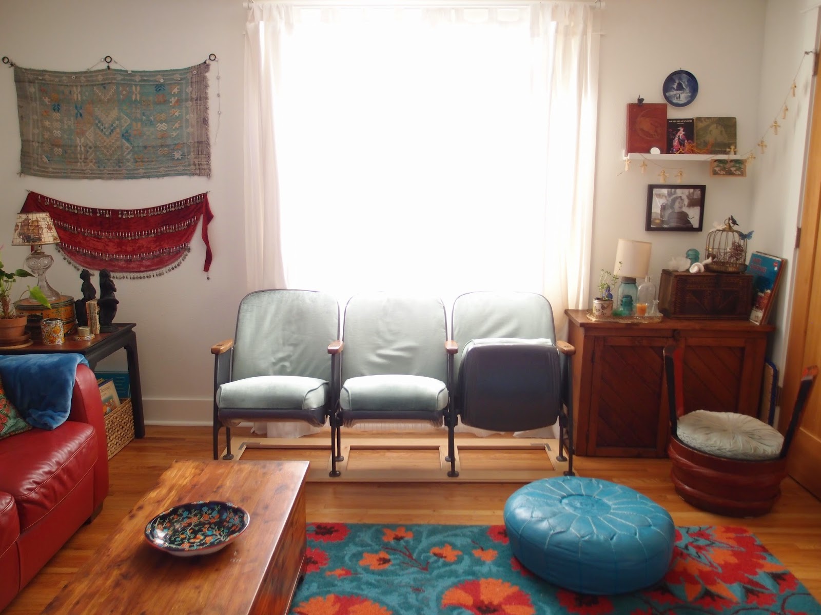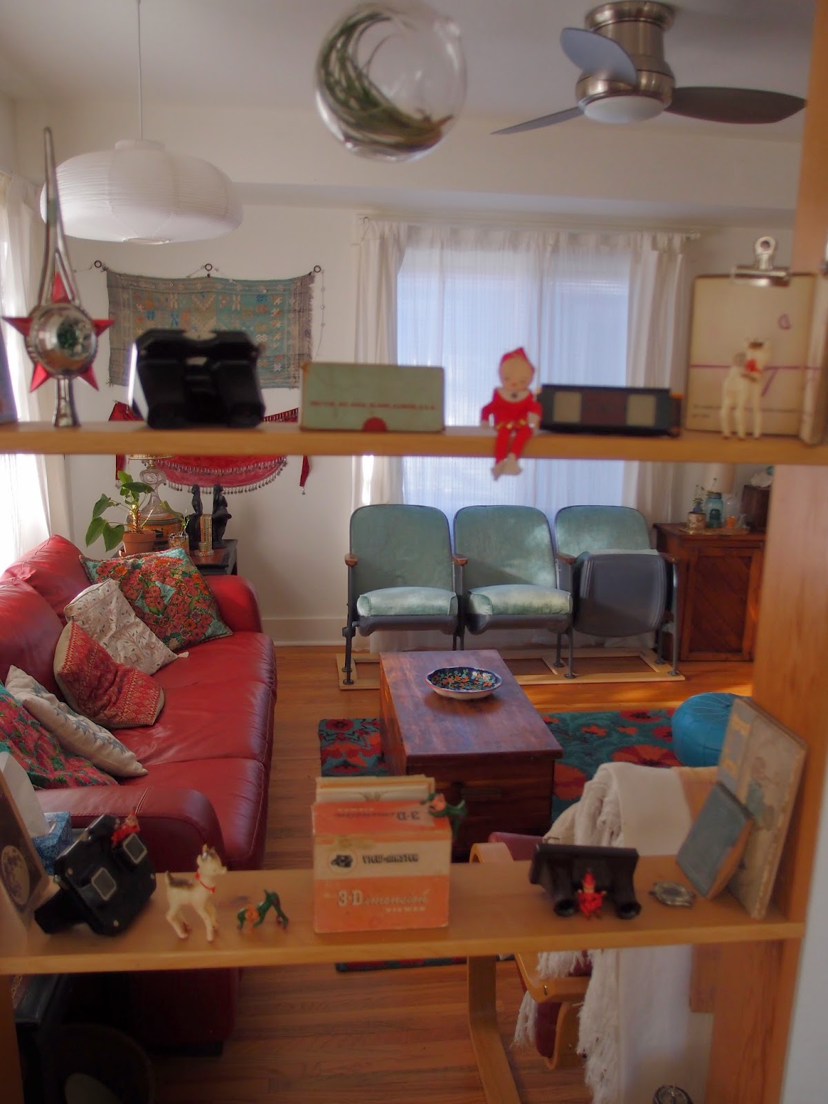 (See those moon-blue theater seats through our shelves of curiosity? Ian and I just re-did them... come back for details in my next post!)