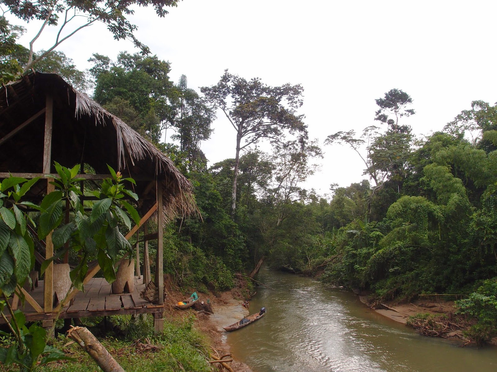 Here is Veronica's house. She's actually from another indigenous group, Quichua (which is also the indigenous group of my co-author, Maria Virginia Farinango.... only her culture is in the Andes mountains, and Veronica's is from this region of the rain forest. So, although their cultural groups share the same name, they have very different ways of life.) She married Gabriel, who is Waorani.