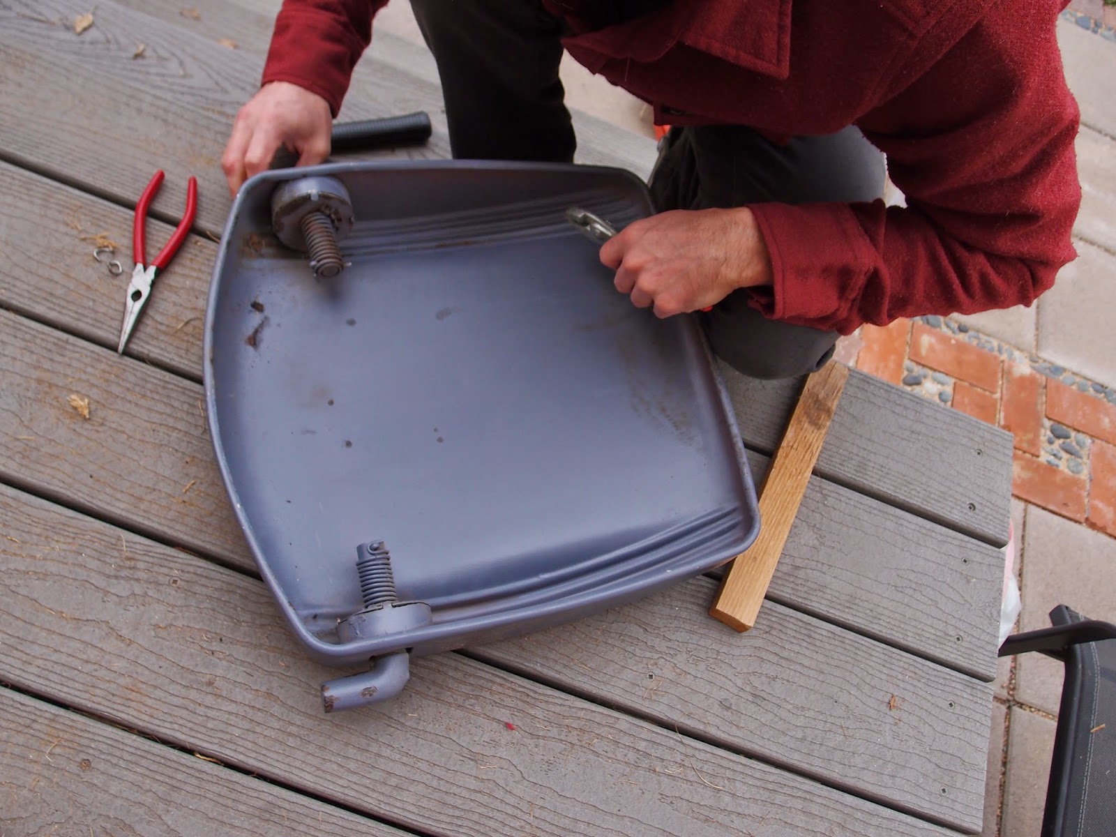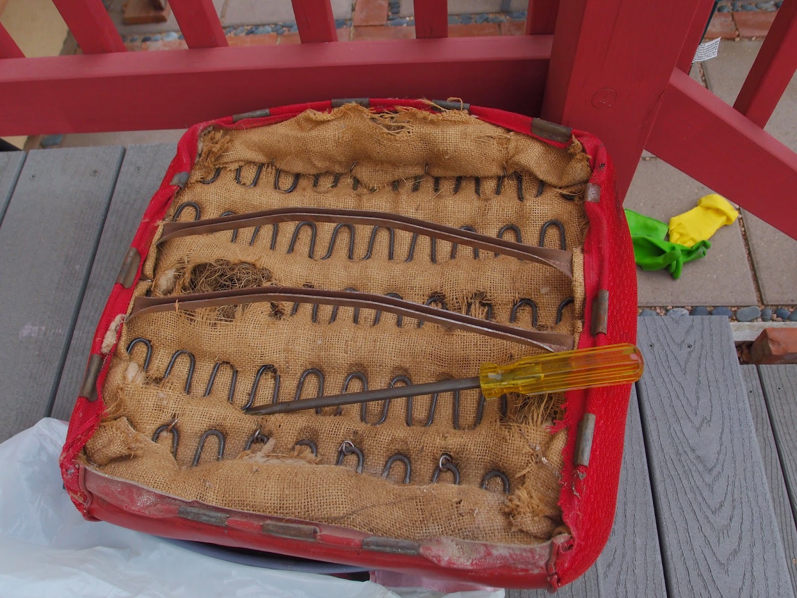 We pried the cushions from the metal base with a screwdriver and got rid of the stuffing....