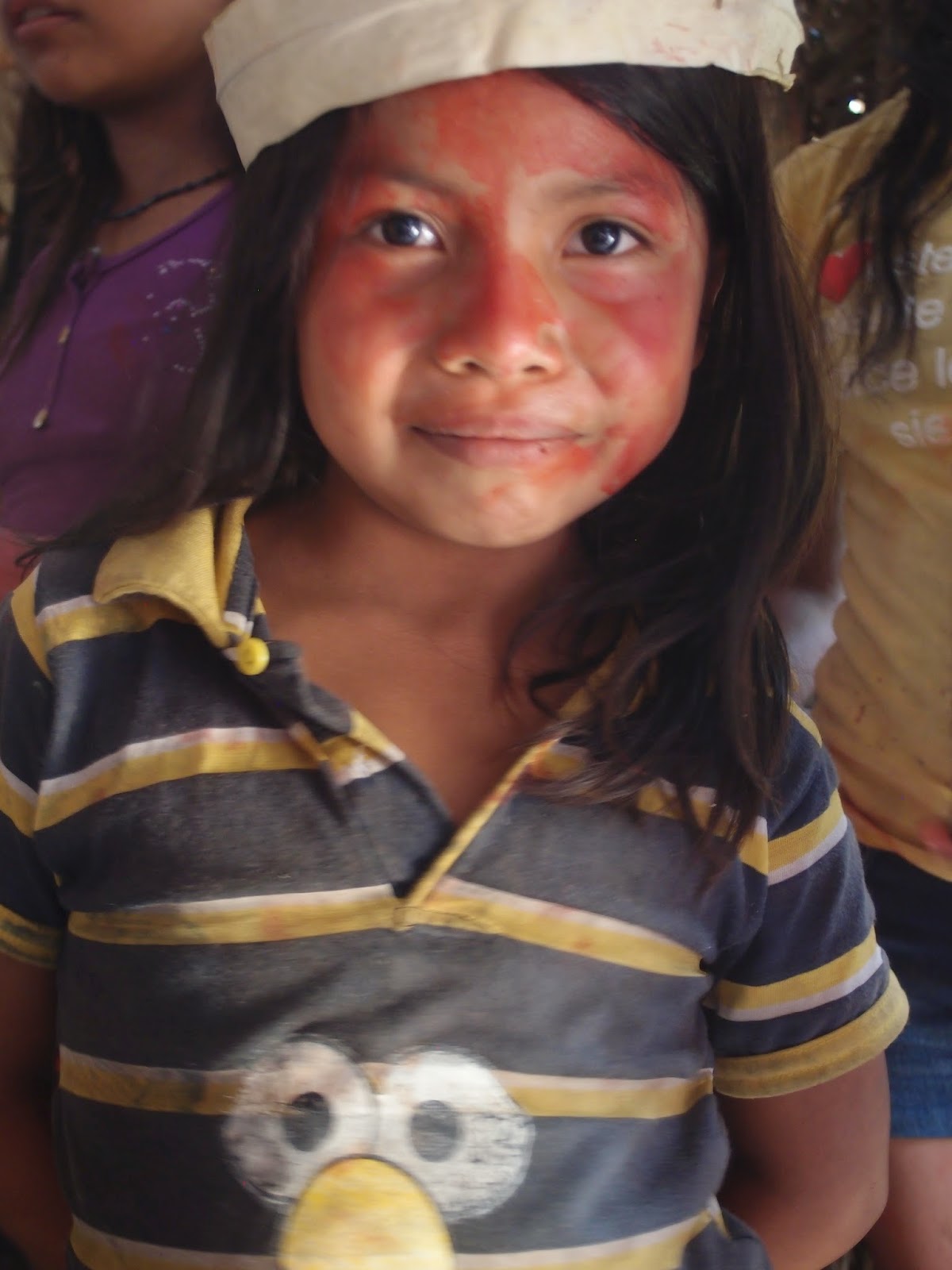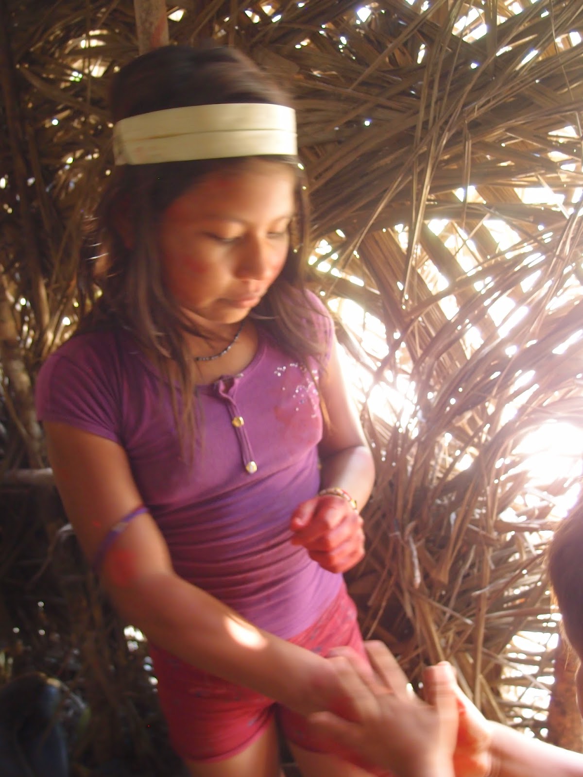 He was such a sport! The girls attacked him with achiote and he had nowhere to run... He's an all-around great guy (not Huaorani himself, but a supportive friend to them). He's finishing his second degree in Quito now, and his research project is on sustainable tourism, focusing on the Huaorani Ecolodge. He has a wonderful rapport with the local community-- you can tell they respect and appreciate each other. I was really grateful to him for helping me coordinate getting the digital recorder and camera to Obe in time to complete her school project.... he worked with his awesome travel agency, Tropic, to facilitate getting my package to the community as fast as possible.