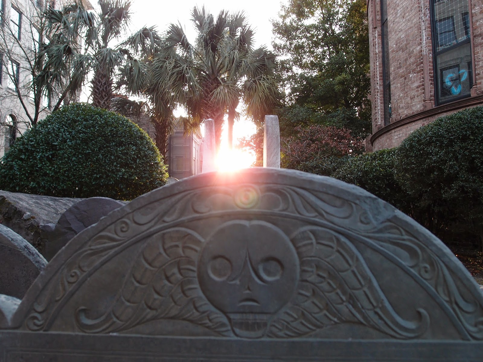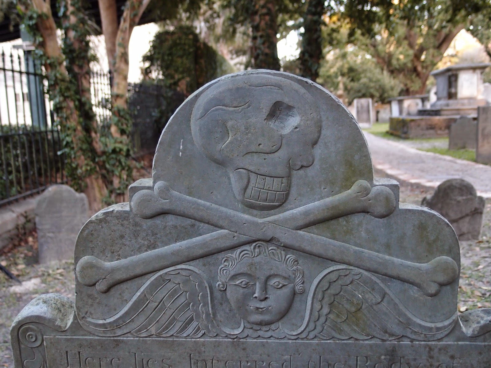 Ancient graves. Apparently, these winged skulls were precursors to cherubs.