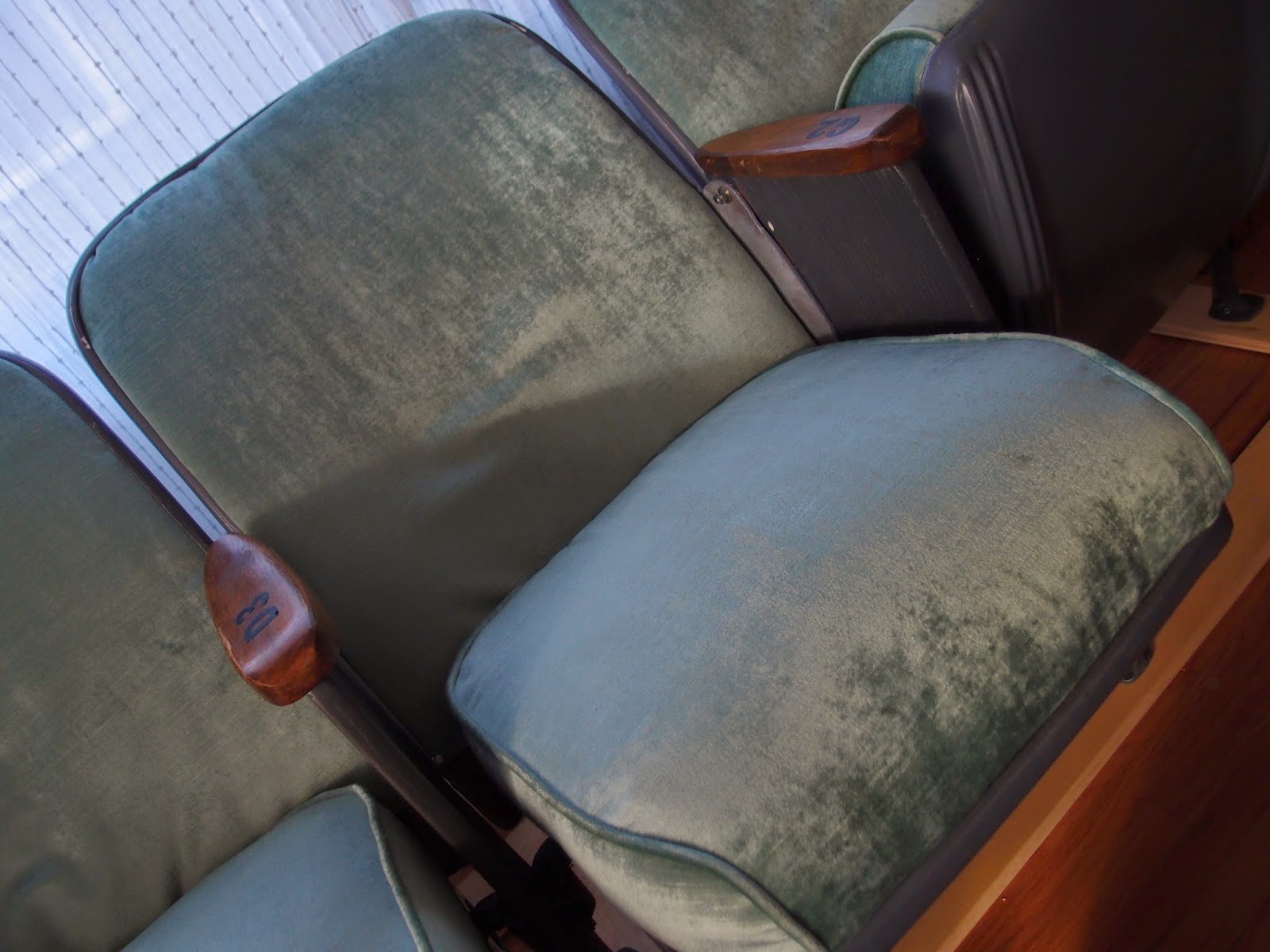 The metal back of the seats are kind of rusted from decades of spilled Cokes, I'm guessing. I like the way the old metal looks, though, so we're keeping it intact.