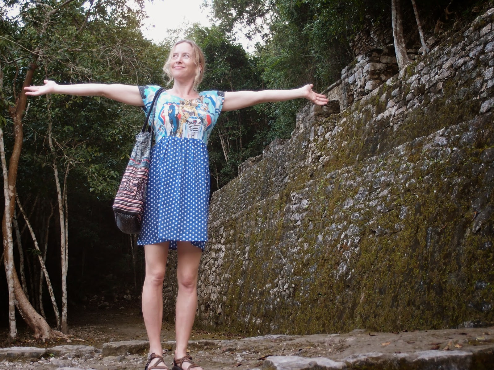 So, I have this policy of not posting pics of him (at least not his face), but I have to show you my imitation of his standard photo pose at these ruins: arms spread out wide, as if to say, "Behold! My ancestors' masterpiece!" We adopted him from Guatemala, which means he most likely has some Mayan blood-- and he is extremely proud of this ancestry. He practically takes personal credit for the temples and ball courts...