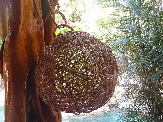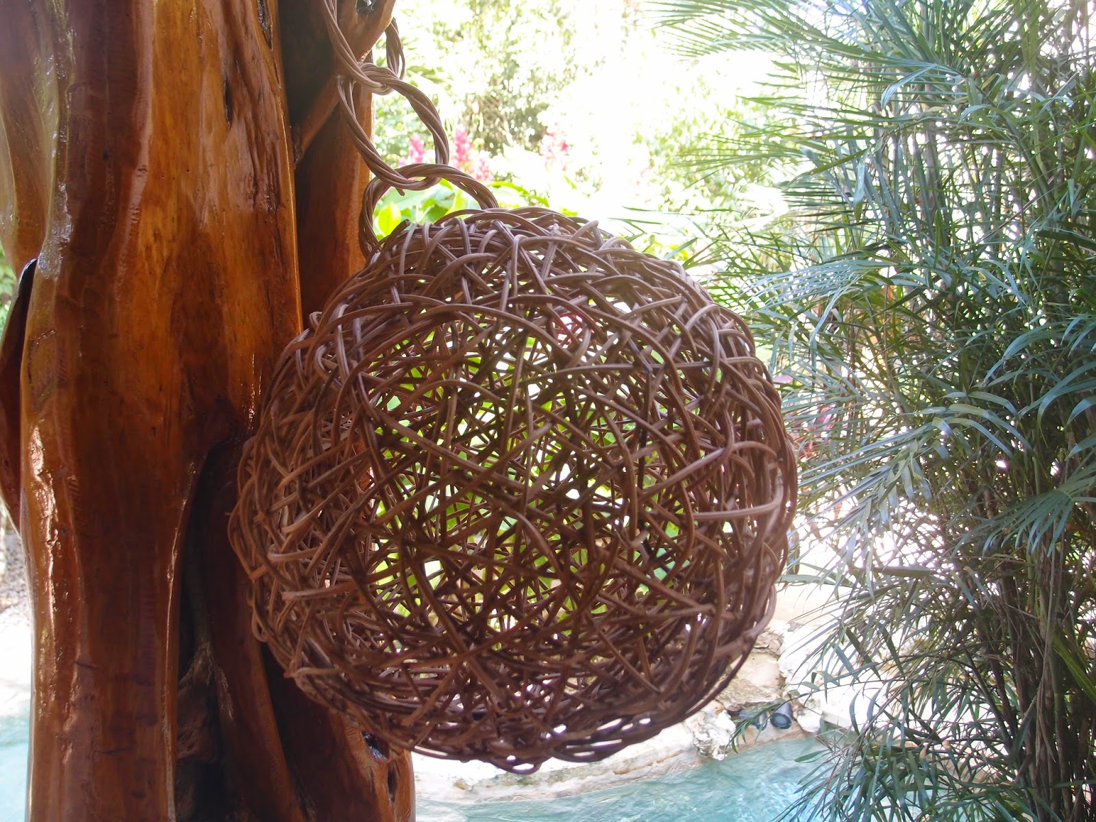 I tend to make impractical purchases while traveling-- things that are a pain to try to carry back on the plane. These large ball pendant lampshades were a craft specialty of the tiny town where our b n b was located. I wanted to get a three-foot-diameter one to hang from our back porch roof (which we have yet to build, haha!) Ian gently helped me realize we'd never get that thing back on the plane, so I settled on a 20-inch one. We stuffed it with clothes and wrapped it in cardboard and stuffed more clothes on the ends of the duffel bag.... and it survived the trip!