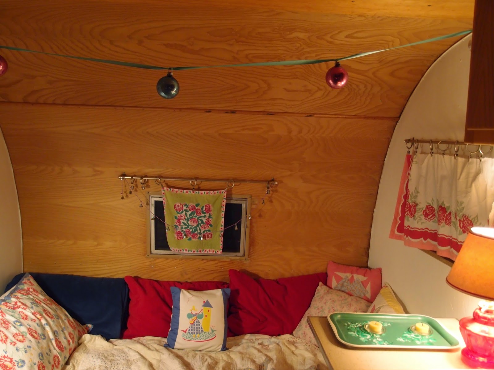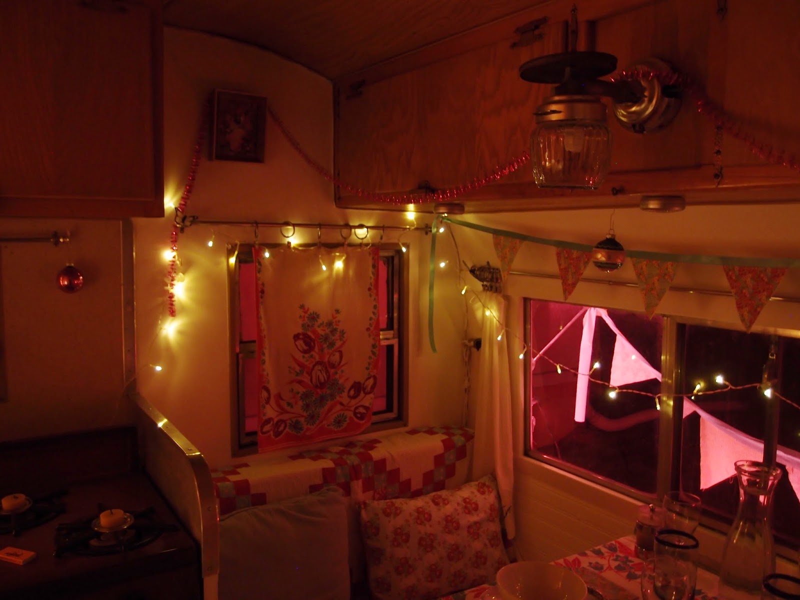 I usually set about five creative goals for myself every January, and this year, I'm happy to report that I made four out of five happen. One of them was to get my trailer back in use... which she finally is (and all decked out for the holidays.) She's been providing us with nice doses of coziness and delight this fall...
