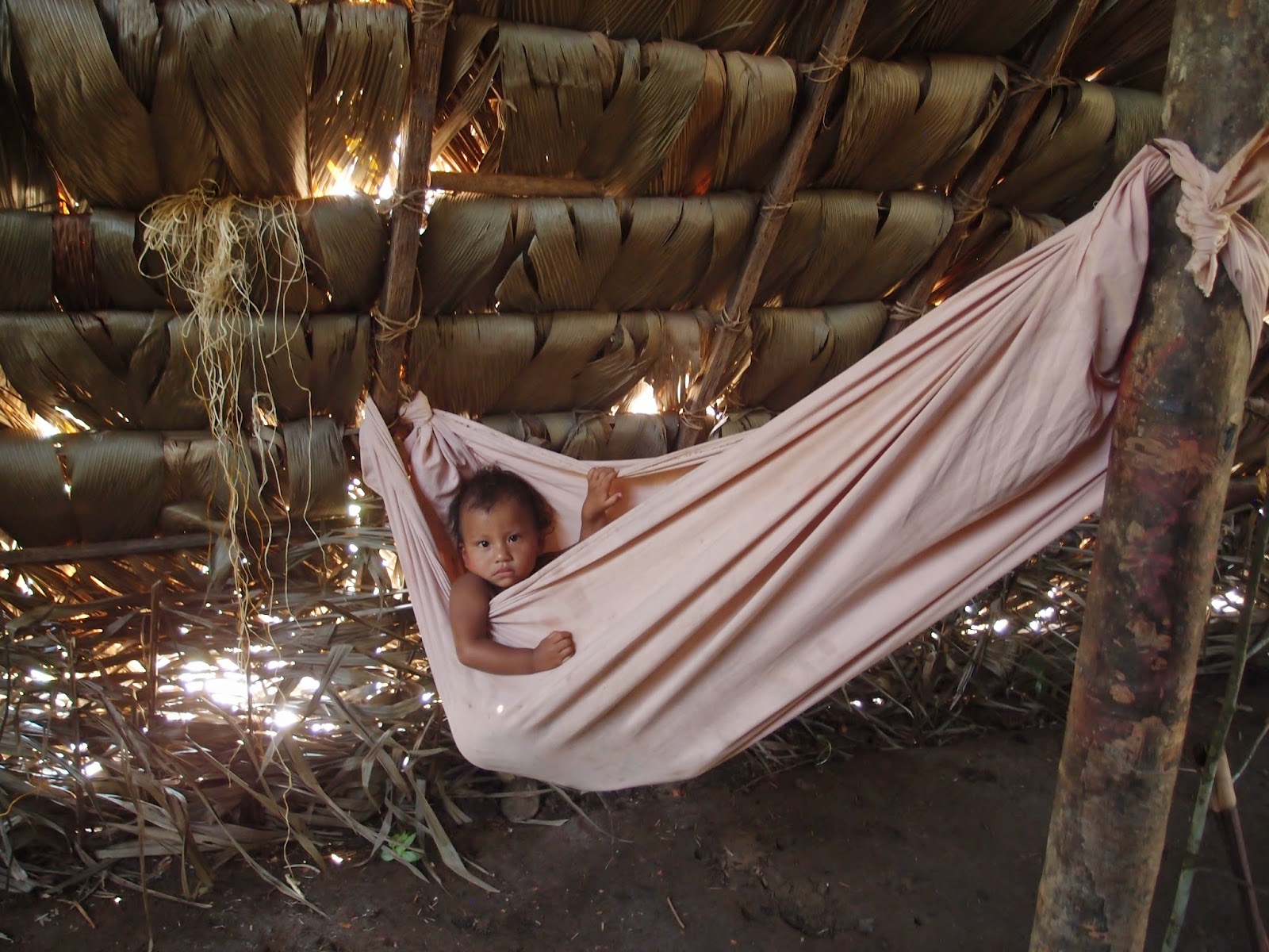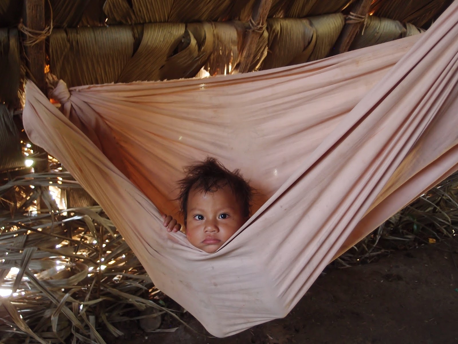 Inside are Bai in the hammock and Beba (his wife). (And doesn't that little one look cozy?)