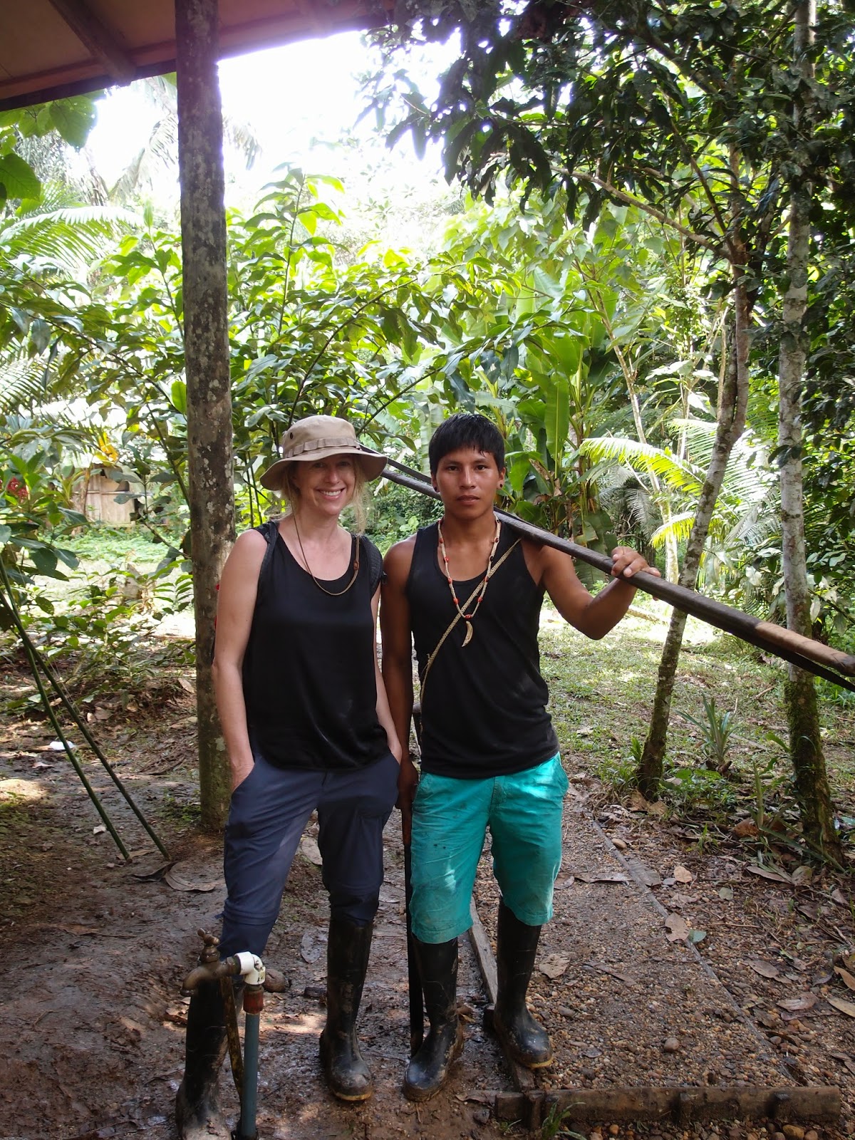 Here I am with Beatriz (Obe) in the canoe... We had great conversation as we drifted down the river. She is busy with her five kids, but dedicated to finishing her high school degree-- this is her last semester! It's challenging for the students here because there's no Internet or cell connection or library-- they have to find creative ways to do their school work.