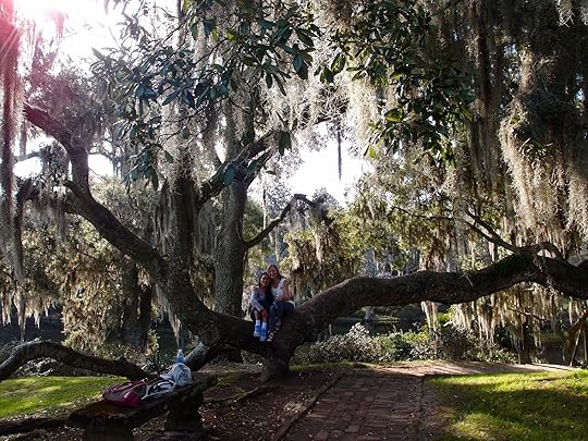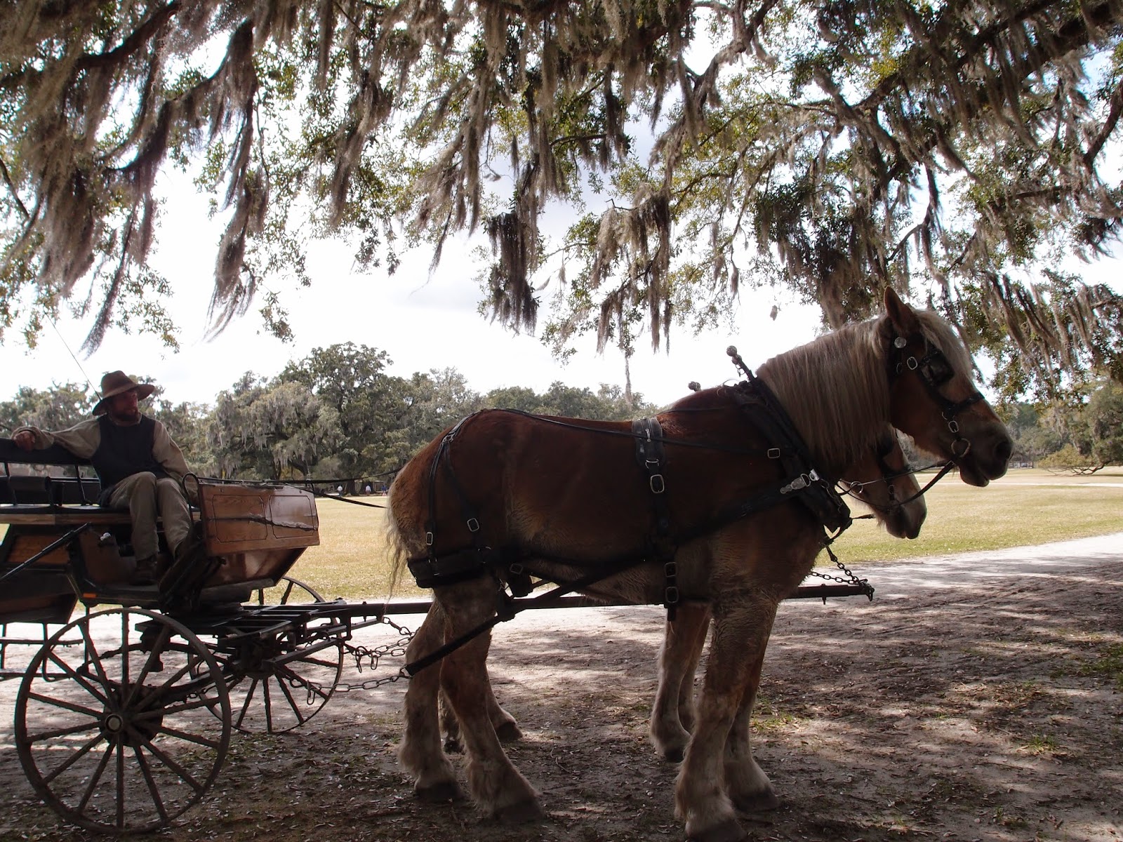 Maria was enchanted by all the animals we saw on this plantation-- goats, hens, roosters, peacocks, cows, egrets, swans, horses.... we took a carriage ride, pulled by these enormous horses. It was interesting, but sad and disturbing, for her to learn about the history of slavery in the U.S. (She herself was a child slave from ages 7-15 in Ecuador.)