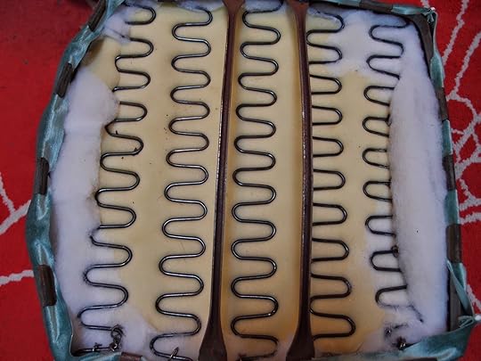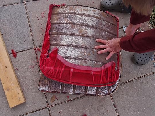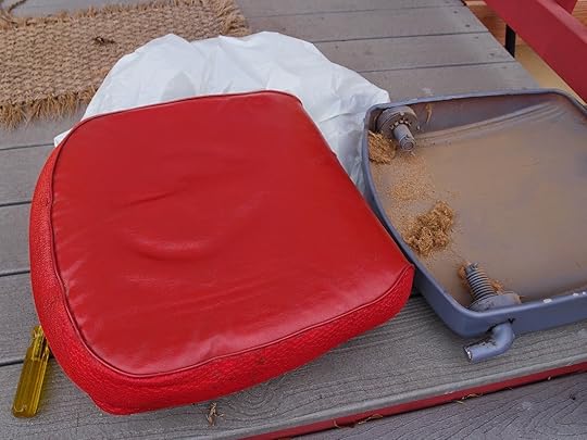 Ian helped me, too, since he's well-muscled and mechanically-minded. There was an issue with one of the seat's springs, but he fixed it. (He always tells me from the get-go that he's not going to get involved with my latest creative dream-project, but then he gets sucked in for one reason or another and saves the day.)