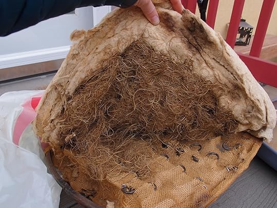 They were full of dust and stuffed with hay and burlap and ancient cotton padding. (Sadly, I'm extremely allergic to dust and hay, so these were an allergy nightmare. I wore a dust mask while removing that stuff.)