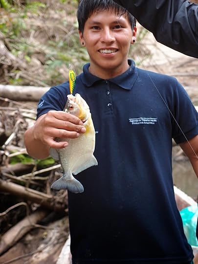 Here, Luis has just dove into the water to look for the piranha that I hooked, but which then got tangled up in an underwater log when it tried to escape and hide. Alas, he couldn't find it....
