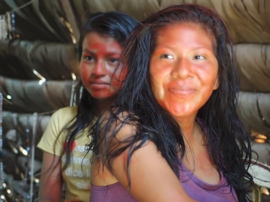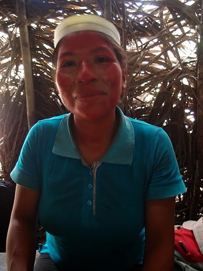 Beba was really kind-- she painted my face with achiote and gave me a palm corona to wear. We had some interesting conversation later, despite the language barrier (I don't speak Waorani, and her Spanish is limited.) She was the only person I met there wearing traditional clothing (hers are made from parts of palm trees.) I spoke with Obe (another woman, in her twenties) about choice of clothing, and she said that she and other young women might wear their traditional clothes at home, but when they're interacting with tourists, they feel more comfortable wearing Western clothes... which is completely understandable. The younger people (in their teens and twenties) are on Facebook (even though they can't access it often because of lack of Internet or cell service)... and I can see that they'd want control over their images online.