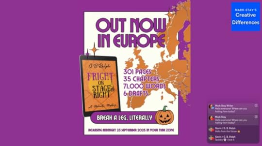 Amazon UKAmazon DEAmazon FRAmazon ESAmazon ITAmazon NLFright on Stage Right will be coming out worldwide as time zones tick over midnight into 23 September 2025.