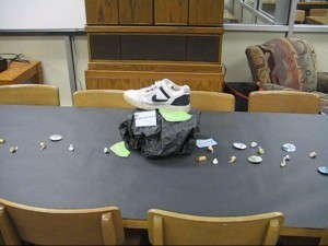 Just look at the table decorations–amazing! Each table represented one of our books. They had to think hard to come up with something for The Limit, but they did a great job. Those are little credit cards and bank statements near the shoe.
