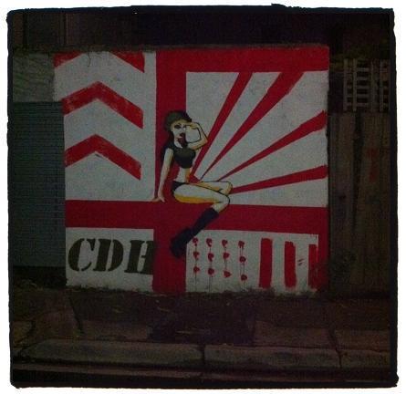 So while I wrestle with my inner editor and my inner suck-monkey, who may or may not be in cahoots or at odds, have some more local graffiti. I would dearly like to know what she's advertising, as it were.