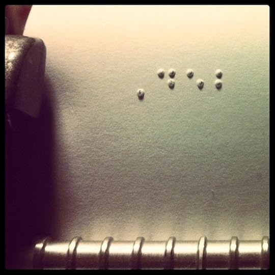 I'm using this bounty to visit family, and one of the things I've learnt, in this visit, is braille. And when I say learnt, I don't mean to say I've mastered even the smallest skerrick of it. I mean to say I've witnessed someone typing my name on a braille typewriter.