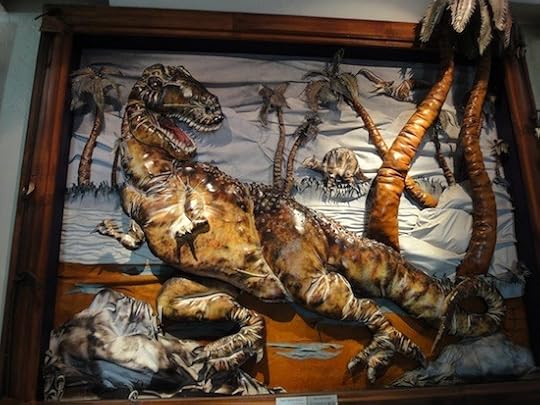 this was the closest i got to a dino photo. yes, that is an inflatable dinosaur mounted in a picture frame. DO YOU BEGIN TO SEE HOW BOGGLING THIS MUSEUM IS?