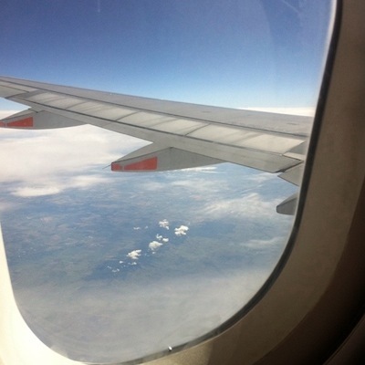 This is a snap I took on Saturday, of the Australian landscape somewhere between Melbourne and Sydney rolling beneath the plane's wings, but it's a suitable enough backdrop to say it's official: I paid for my flights today.