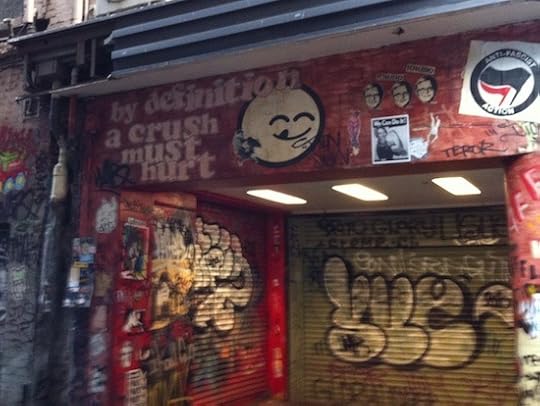 The mighty Tessa pointed out this snippet of street art to me not long after I moved down here, and I've loved it ever since. I particularly love the gleeful face it's paired with. Cos those crushes, my friend: they're going to hurt you every which way 'til Sunday, but you'll still welcome it. At least in part.