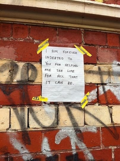 And I'm guessing it's a relic of Valentine's Day, but yesterday when I wandered up this odd little lane I found notes tacked to the walls. Probably above where she parks.