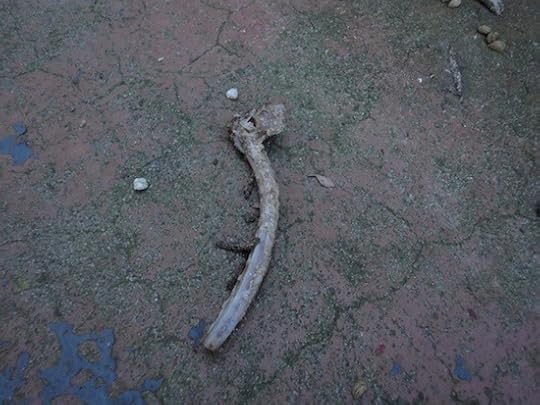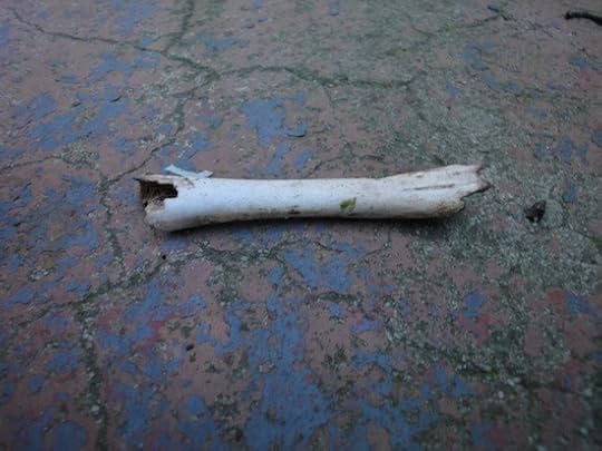 The bones appeared singly over the past month. Since I can't see how a cat could get onto the roof of the apartment block (there are no adjoining blocks with rooves high enough, and no trees the cat could climb that would deliver it so high), I'm forced to consider alternative theories.