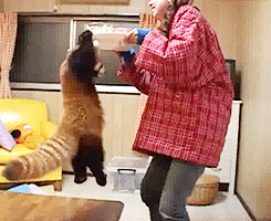 Red Panda is my totem animal (we’re both boofheaded creatures who really like to sleep…), and I’m thinking it might also be Squawk’s, because this is exactly what she does to my breakfast bowl every morning.
