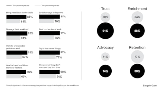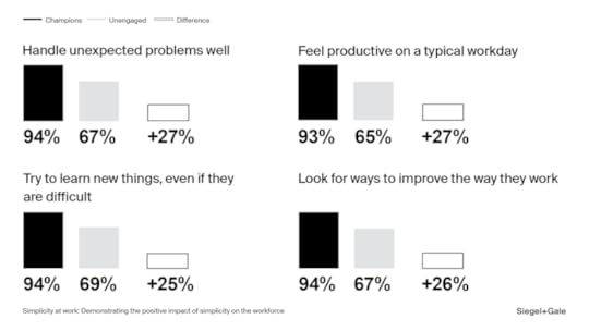 The 25% of employees working in simple workplaces – those where people easily get their work done and feel productive doing so – behave in a unique way. Employees working in this environment go the extra mile. They advocate on behalf of their company, innovate more, and have higher retention rates.