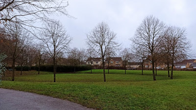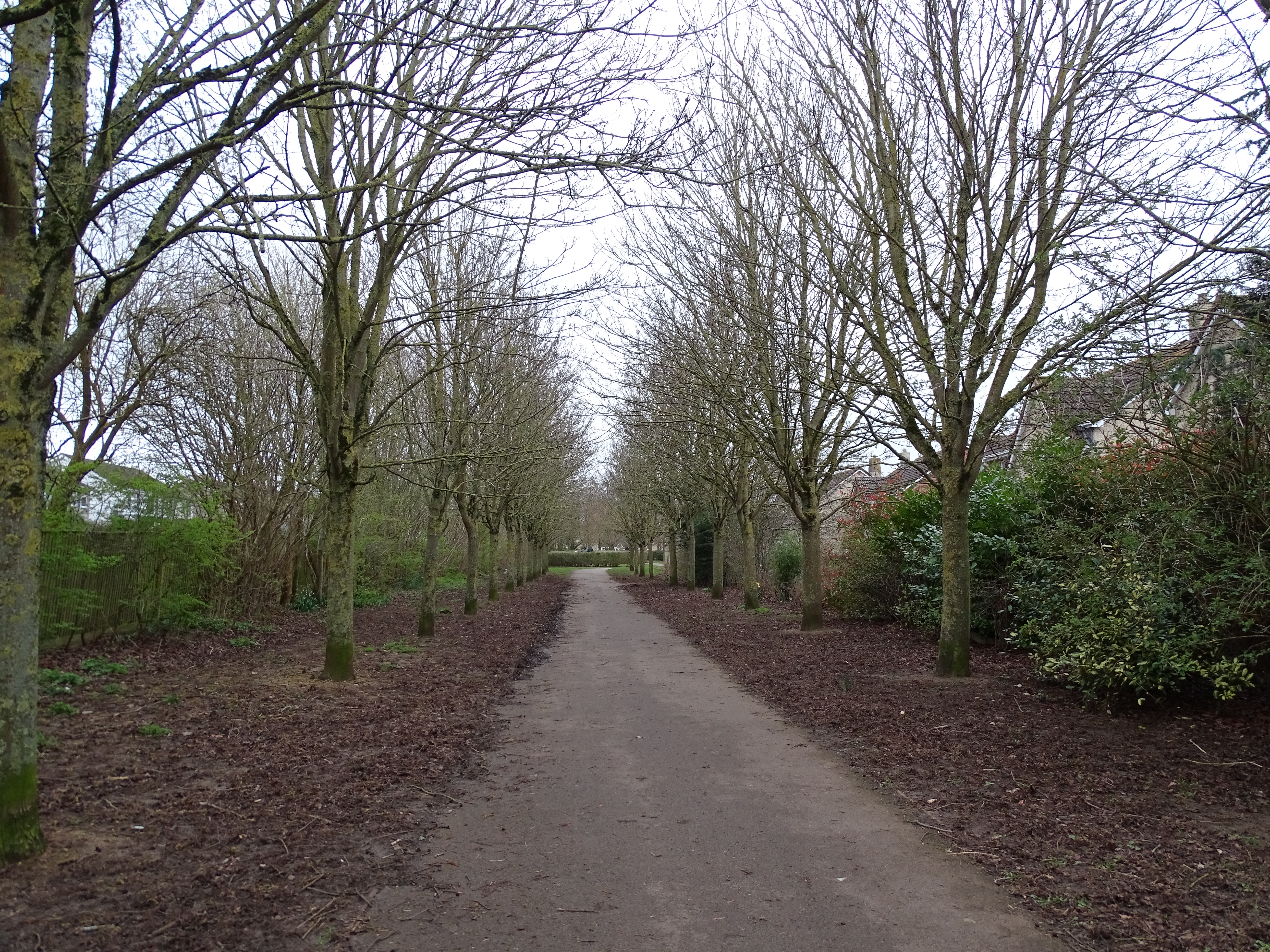 1a) I will start describing this route from Amberley Close, where the path follows a line of trees, then an avenue of trees that lead directly to Newbury Avenue Park.