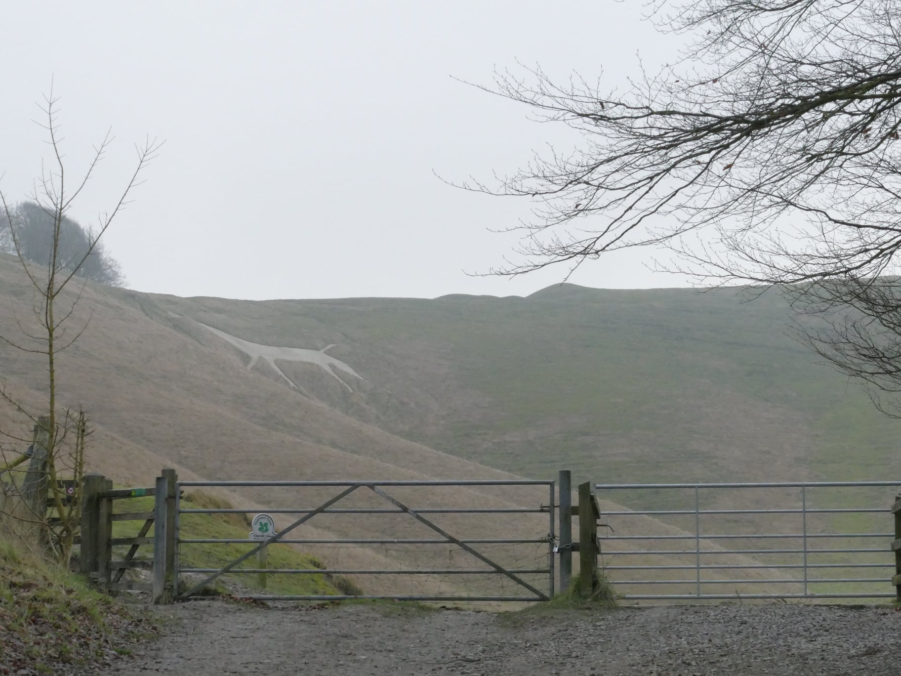 1) When you have parked / arrived at the start point. Enter the track by the White Horse information board and walk along the lovely beech trees. Soon you will be afforded your first view of the horse, monument, and Oldbury Castle.