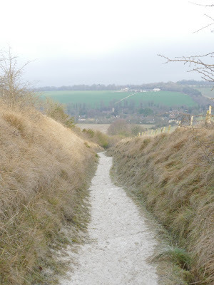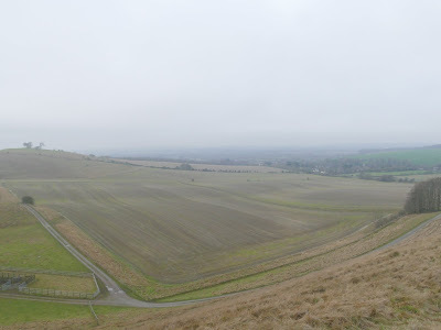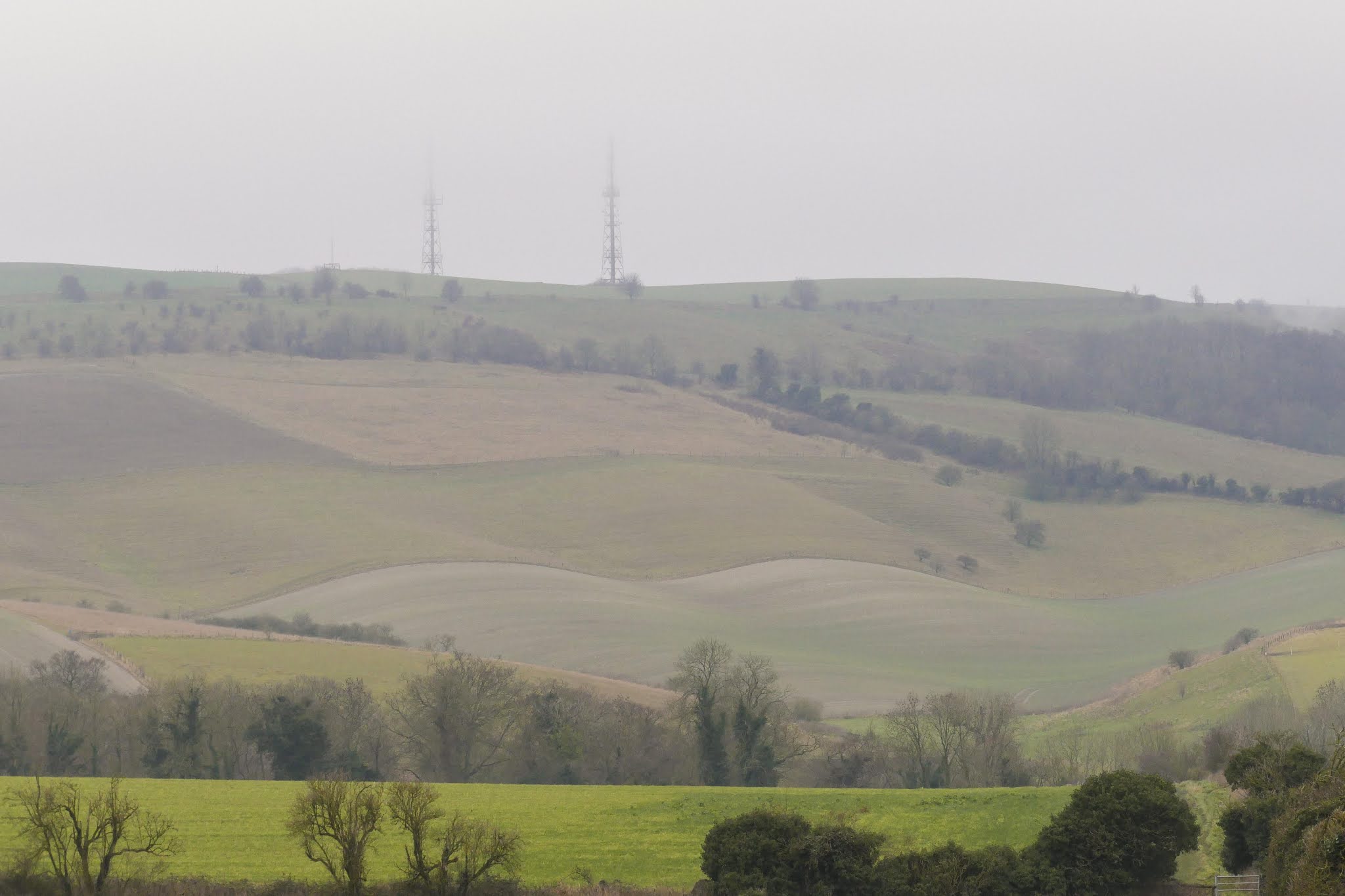 3) Along this stretch, you will begin to get wonderful views of the area. First the hill at Cherhill Downs, upon which are Oldbury Barrows, a collection of round barrows and a pond barrow, which Grinsell dated to the Bronze Age.You'll also see the communication masts up on Morgan's Hill, which will feature in a future walk.