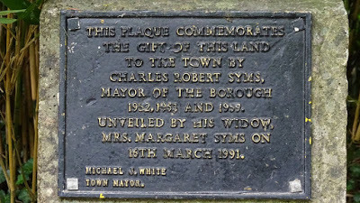 Following the path as it meanders, we come upon a plaque commemorating Syms, who was a local and well-known builder around Calne. He developed nearby Horsebrook Park c. 1954 and it was the remaining land, which couldn’t be used for housing, that was donated to the town.