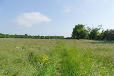 Follow the desire line path and as you progress, keep the hedge to your left. In the spring, this is a beautiful field, filled with buttercups.