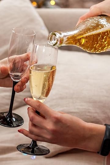 A book, crumpled tissues, an empty wine glass. She frowns at the glass, momentarily, before the frown clears and her lips lift...