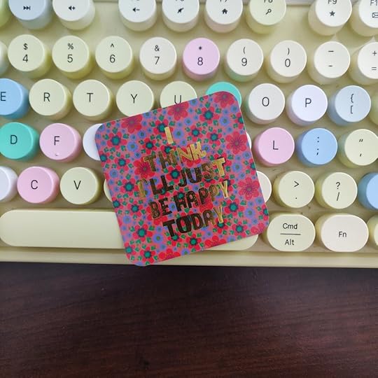 A laptop sticker from my former boss. The sticker reads, “I think I’ll just be happy today.”