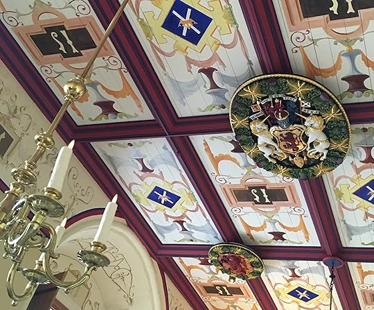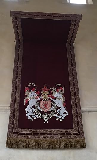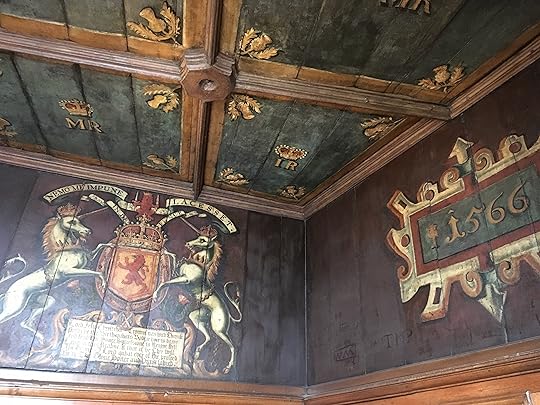 When Francis died at the end of 1560 and Mary became a widow and Dowager Queen of France, her Arms changed slightly, and France became dimidiated and not impaled. France’s half of the Shield showed only half of France’s Coat of Arms. The fashion of either impaling Arms (where the full Arms are used on both sides) and dimidiation (where half the Arms are used and both ‘merge’ into one another) is an often confusing topic in itself.