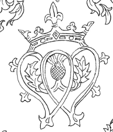 The representations of Mary’s Arms shown here are taken from Mary’s seals and Scottish coins of the time. No coins were issued in Scotland however, between 1562 and 1565. Thereafter, only the plain Scottish Arms were used again as can be seen in (the drawing).