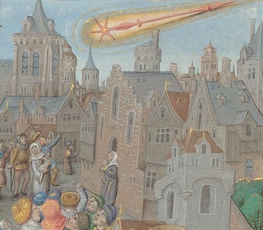 The fact is that people in the past simply saw the world differently than we do because of light. Even daylight was different, without all the pollutants in the air, and the night sky shone so brilliantly with stars that we must now go to very remote places on our planet to catch even a glimpse of what the ancients saw. And see things, they did: comets and shooting stars. Medieval writings abound with mentions of the things they saw in the night sky, usually interpreted as portents for evil things to come. Comets carried with them particularly evil omens. Comets foretold the Black Death, as well as just about any major war you can think of. Untimely death of a monarch or heir to an ancient family? Comet. Pestilence? Comet. Famine? Comet. You name it, there was probably a comet spotted in the sky by a diligent monk beforehand.